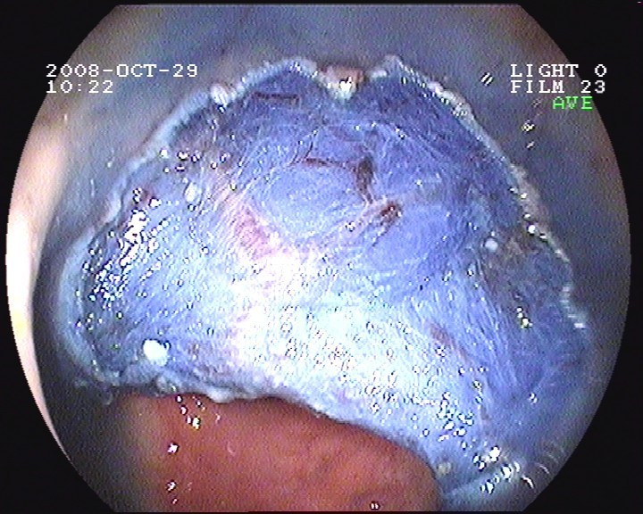 Coloskopie - großer breitbasiger Dickdarmpolyp (Frühkarzinom), Abtragungsstelle nach kompletter Entf