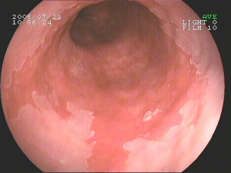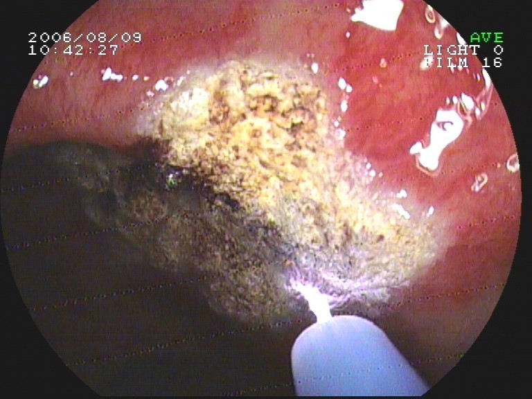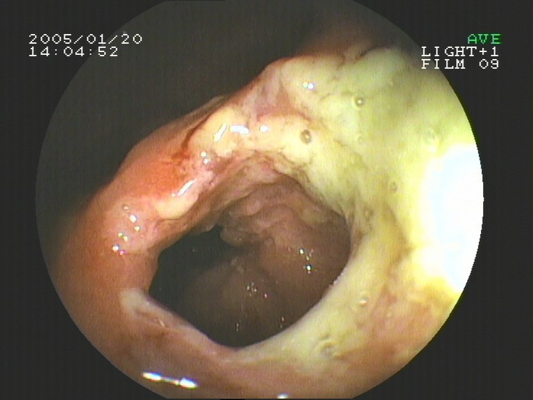 Coloskopie - pseudomembranöse Colitis (bakterielle Dickdarmentzündung)