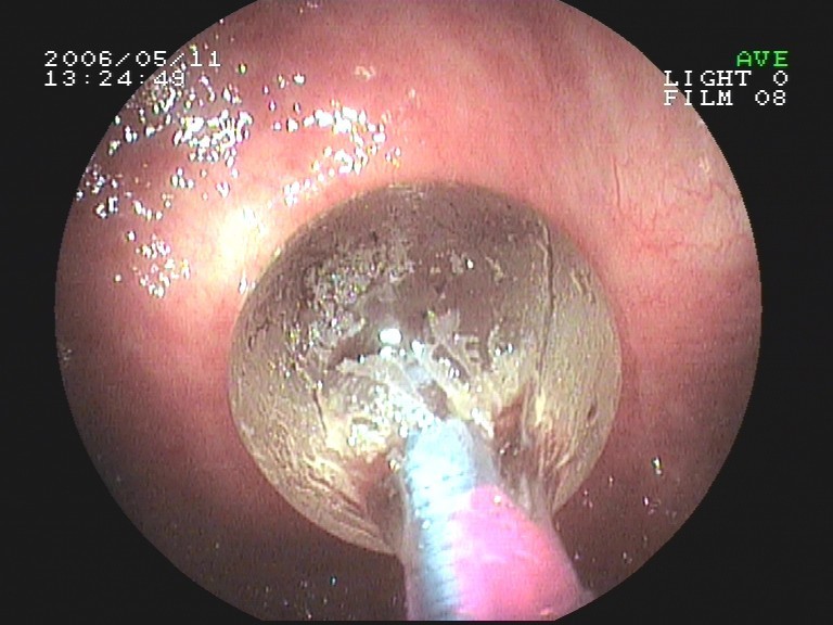 Gastroskopie - in der Speiseröhre feststeckendes Fleischstück