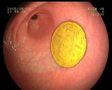 Gastroskopie - verschluckte 20-Cent-Münze im Magen