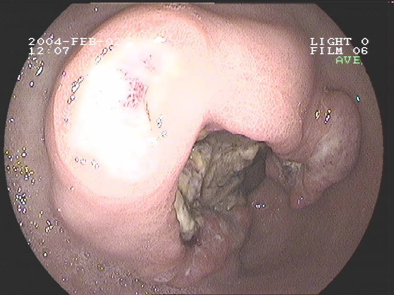 Coloskopie - Dickdarmkarzinom mit deutlicher Stenose (Verengung des Darminnendurchmessers)